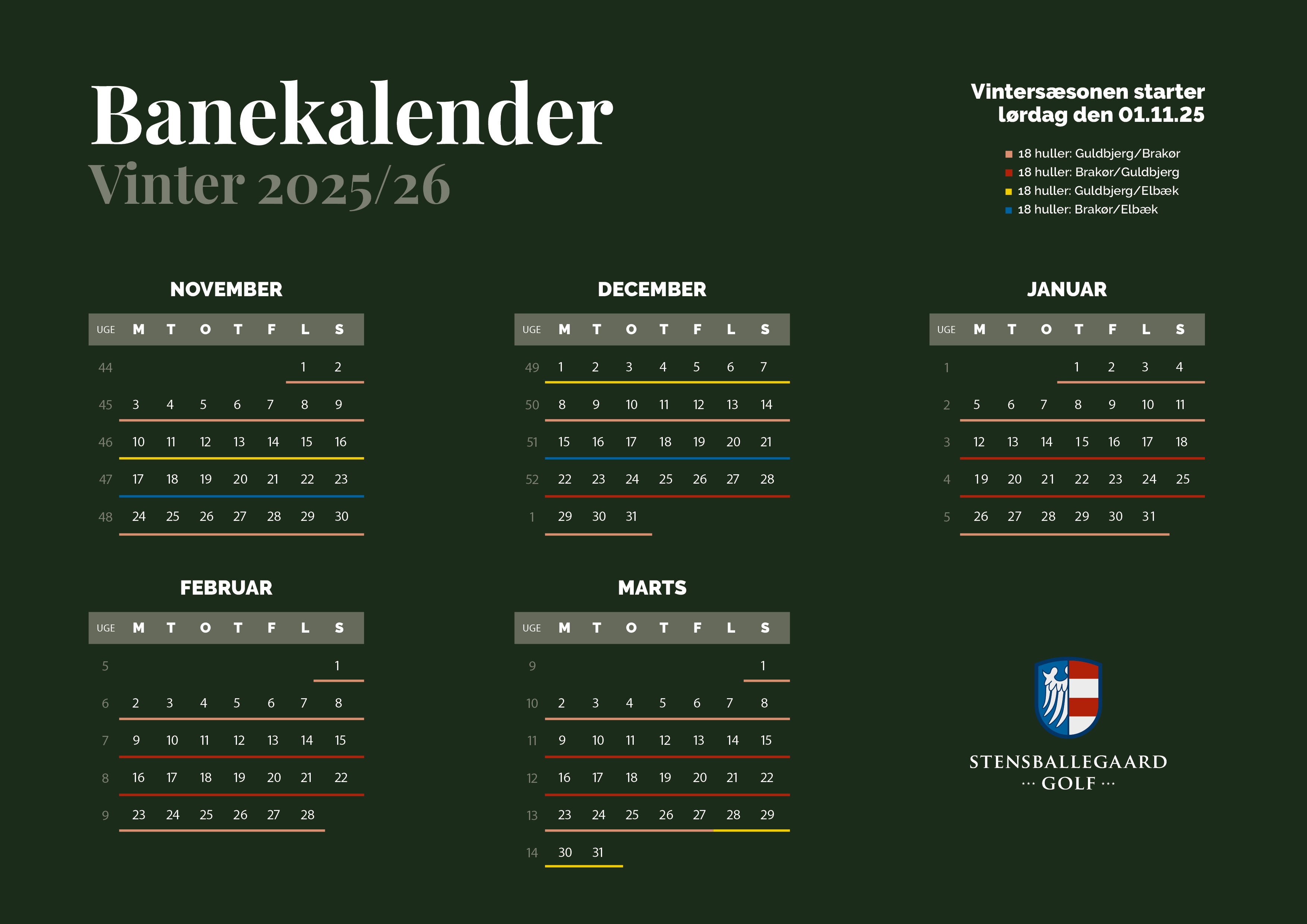 *** Elbæk er åben til og med den 21. december og indgår dermed i banerul frem til denne dato. Når Elbæk lukker skal 9 hullers medlemmer booke forni ***